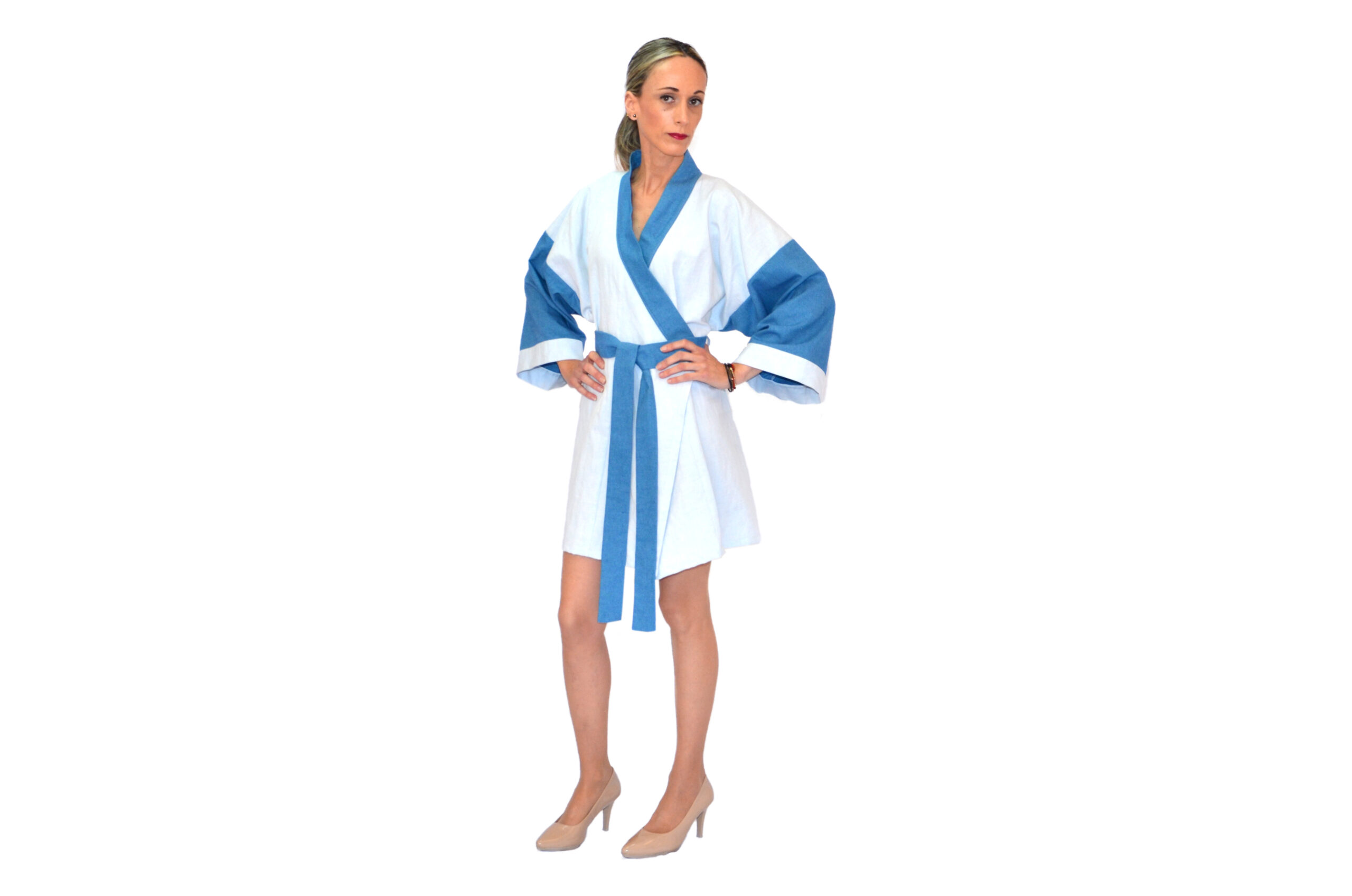 En la sencillez está la clave de la elegancia. Combina tu prenda como gustes y alcanza la perfección. Kimono confeccionado, a mano, con loneta en tonos claros. Se aconseja su lavado a máquina, en frío.