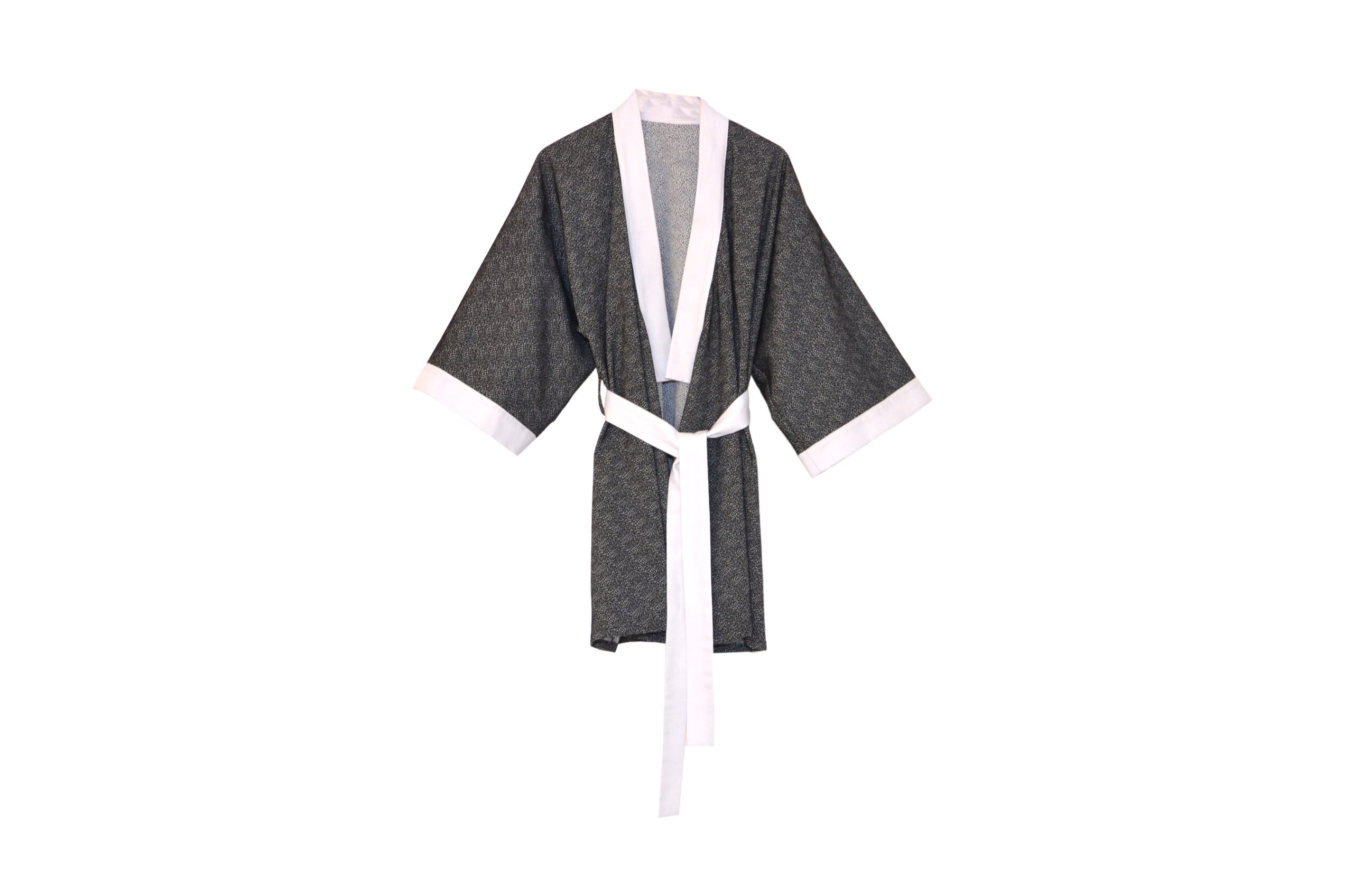 Kimono brocado con una original trama y estampado negro