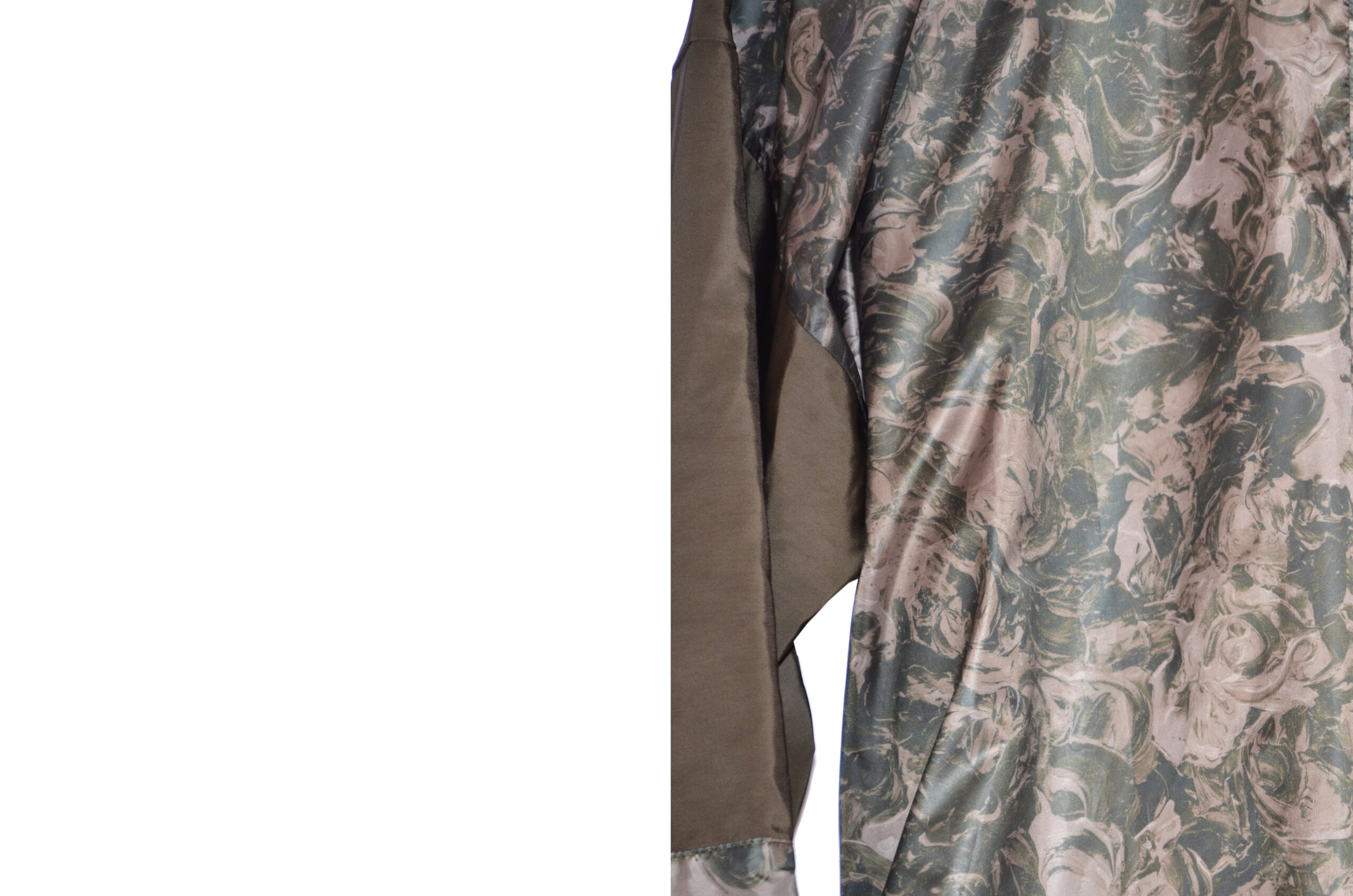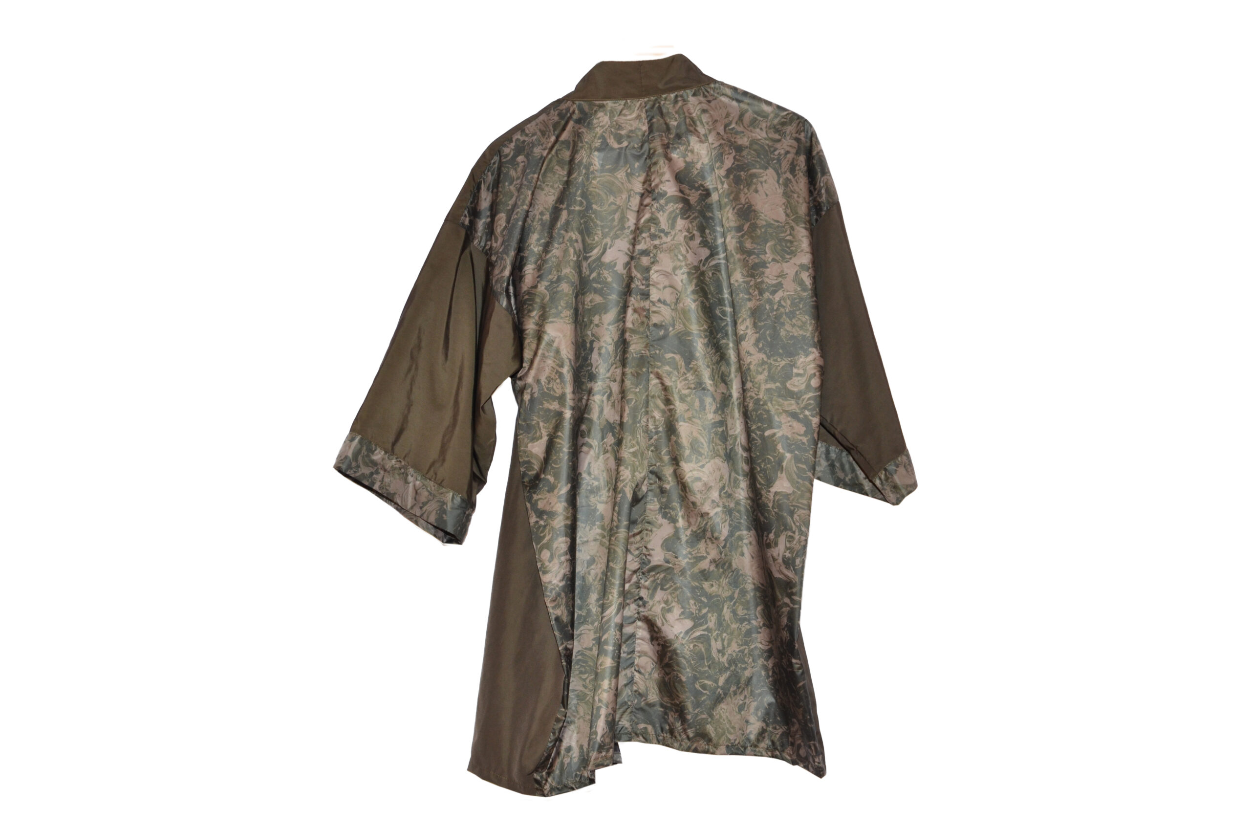 Kimono tela paraguas en verde militar y espalda estampada en floral abstracto