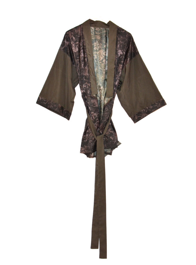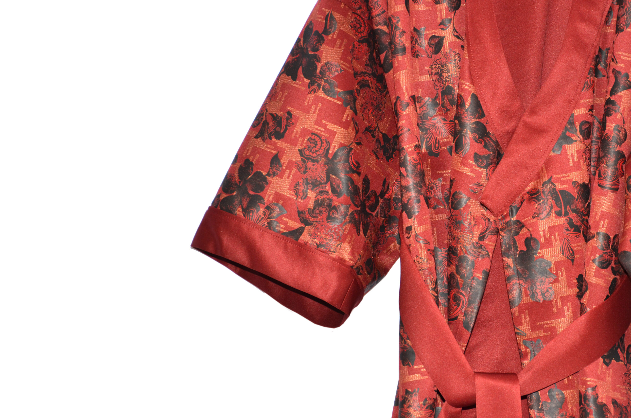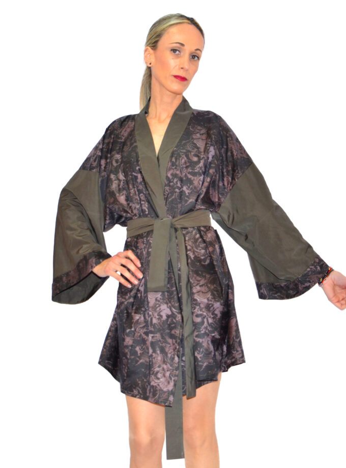 La intensidad de los tonos más pasionales convierte a este modelo en una pieza clave en tu vestidor. Kimono de neopreno confeccionado a mano, disponible también en azul marino. Se aconseja su lavado a mano, en frío.